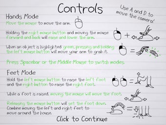 Octodad kent twee besturingselementen; de handen-modus en de voeten-variant. Met de linkermuisknop beweeg je het linker been en de rechtermuisknop bestuurt de rechtertentakel. Eenmaal op de plaats van bestemming wissel je tussen de modi door op de middelste muisknop te klikken (de spatiebalk werkt ook). Nu bestuur je een arm waarmee je objecten pakt. Hoe goed je ook je best doet, Octodad lijkt nogal dronken. Door deze pittige besturing loop je te allen tijde kans dat je gezinsleden je geheim ontdekken.