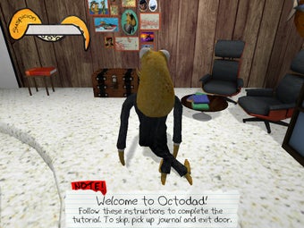 De klusjes die je voorgeschoteld krijgt zijn niet moeilijk, althans voor een mens. Octodad heeft het namelijk best zwaar om de afwas in de gootsteen te zetten of een goal te scoren tegen zijn zoontje. Voltooi je karweien snel en gezwind, dan is er niets aan de hand. Laat je Octodad een beetje klungelen dan loop je het risico dat zijn familie hem ontmaskerd en sushi van hem maakt.